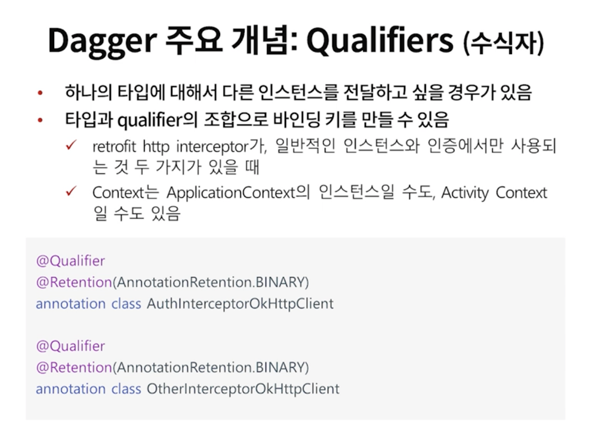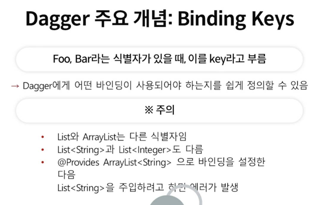 - 바인딩키는 식별자로서 사용된다 ( 대거에서는 엄격하게 사용된다 )