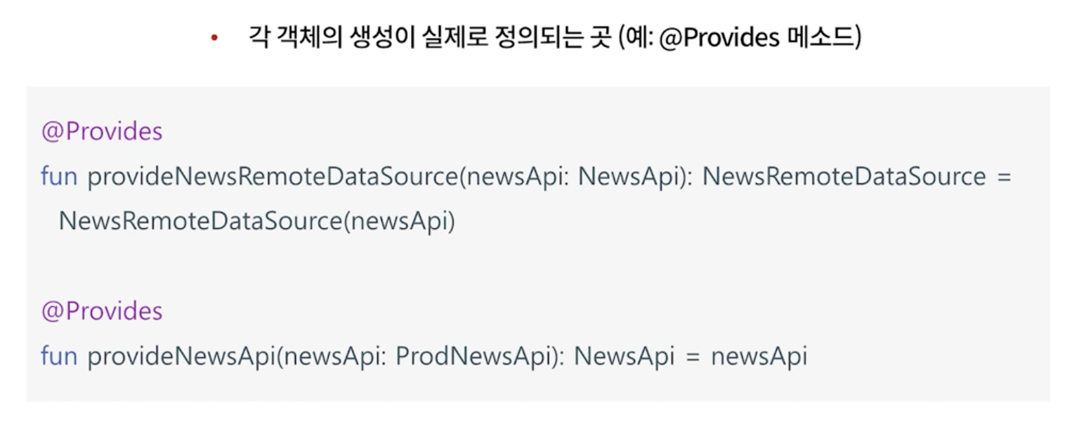 앞서 @provides라는 어노테이션이 있었는데. 이 메소드에 리턴타입이 어떤 대거에서 무엇이 정의되고 있는지