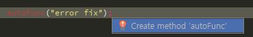 특정 부분에서 정의하지 않는 autoFunc을 호출했다. 당연히 에러가 표시된다. 오류가 난 부분에 커서를 두고 오류 수정 단축키를 누르면 위와 같이 "Create method 'autoFunc'"라는 문구가 나오고 엔터를 누르거나 클릭을 하면 다음과 같이 메서드가 자동 생성된다. 임포트도 마찬가지로 하면 된다.