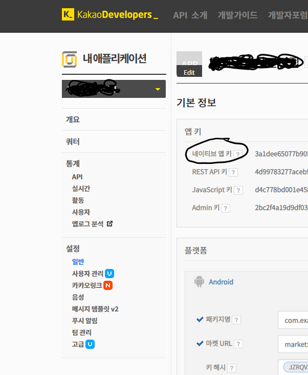 string.xml에 카카오 디벨로퍼에서 제공하는 키값 추가 (네이티브 앱 키 추가하면 됩니다.)