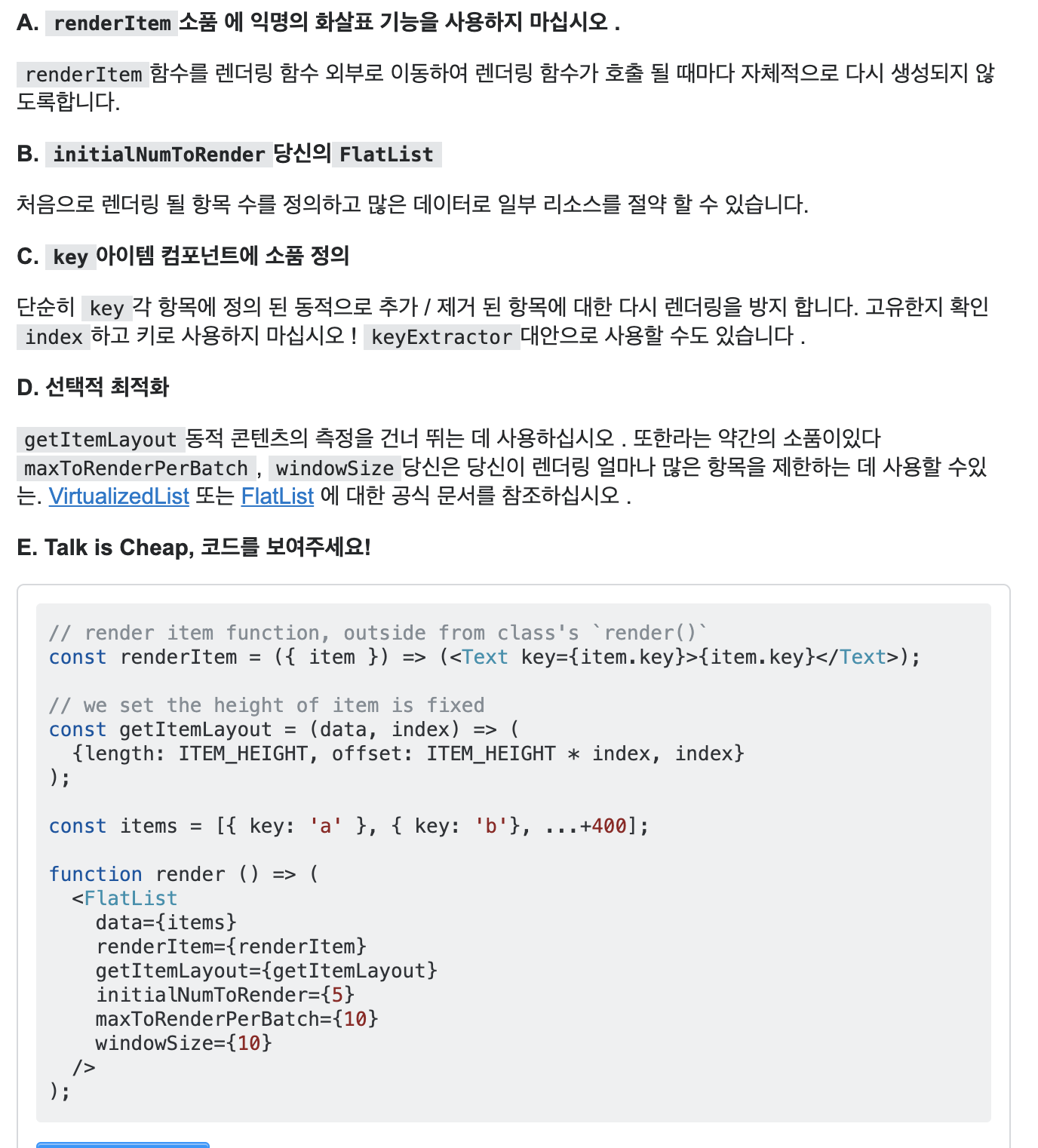 출처 : https://stackoverflow.com/questions/44384773/react-native-100-items-flatlist-very-slow-performance