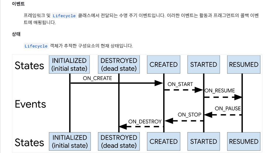 - Activity, Fragment에서 생명주기를 분리하여 Lifecycle 객체에 담습니다.