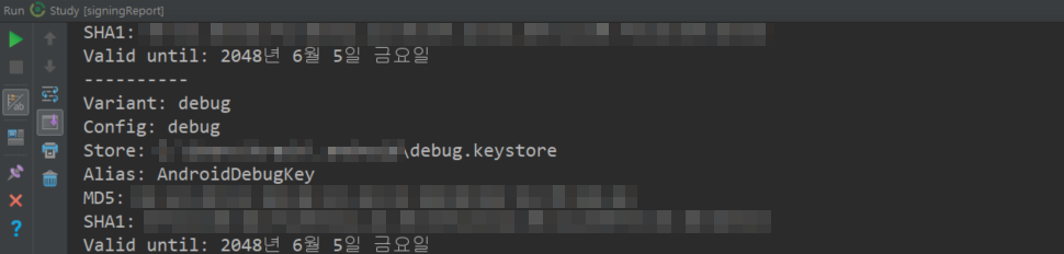 이렇게 입력하면 디버그용 키 해시를 확인할 수 있습니다.