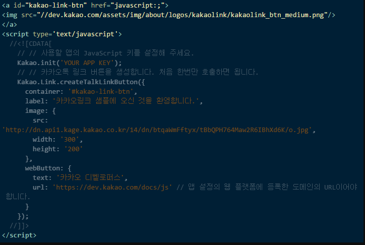 이때 별도의 스크립트는 필요없다. 단, 카카오톡이 설치되지 않은 디바이스에서는 아예 아무런 작동도 안한다.