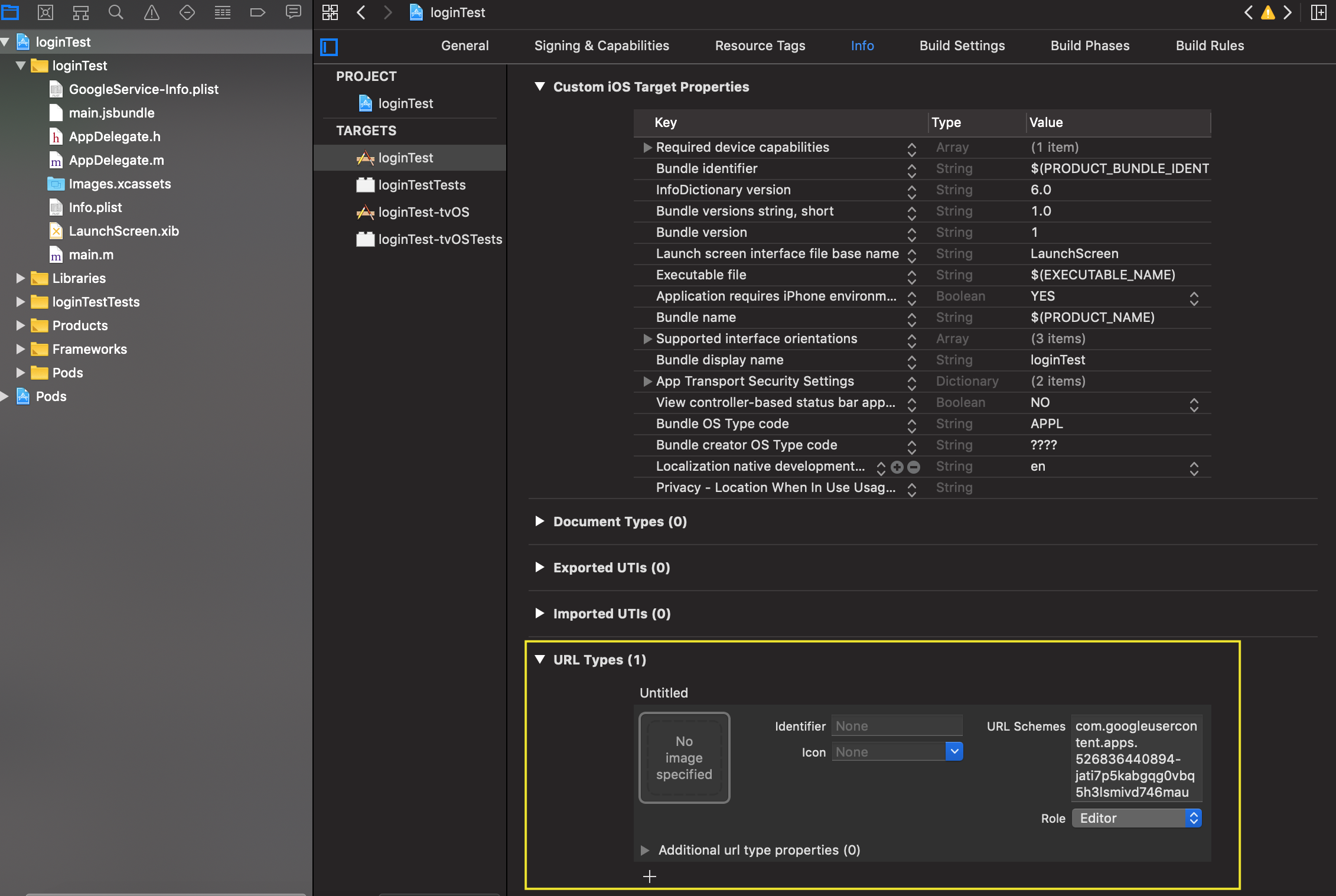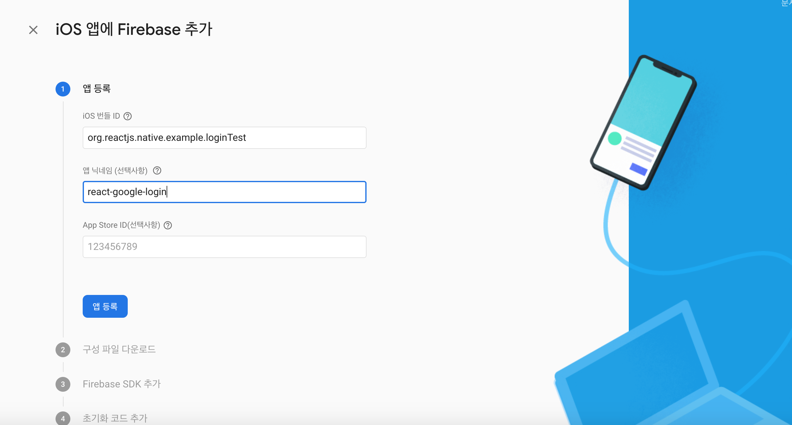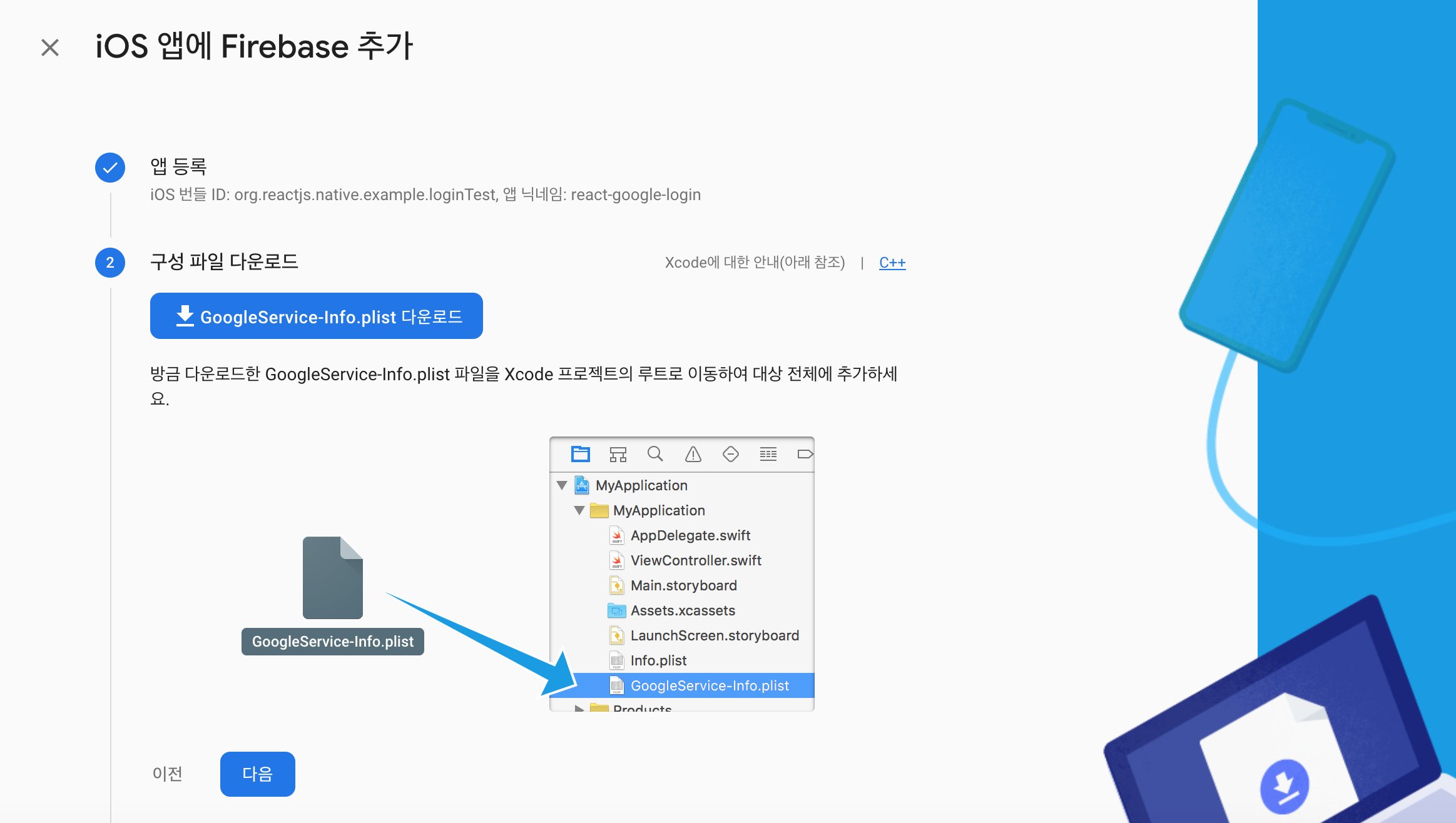 빈 공간에 적당한 내용을 채운다. 마지막에 ios의 URL Scheme 부분은 추후 Xcode에 들어가는 환경설정에 필요한 내용이다.