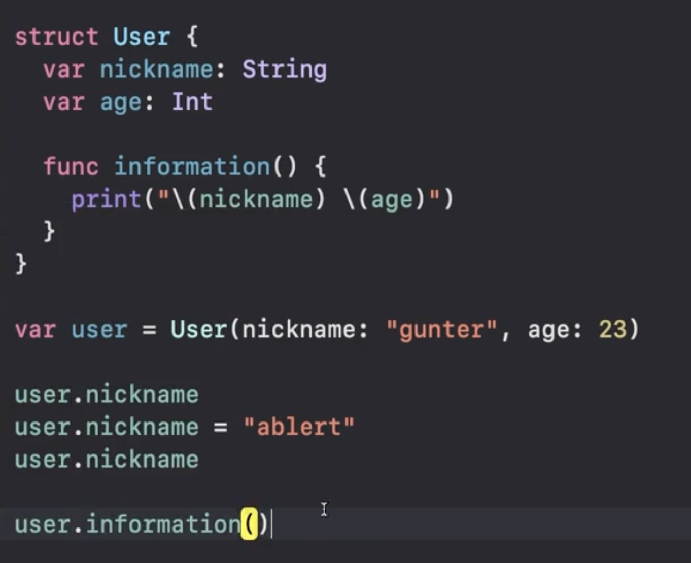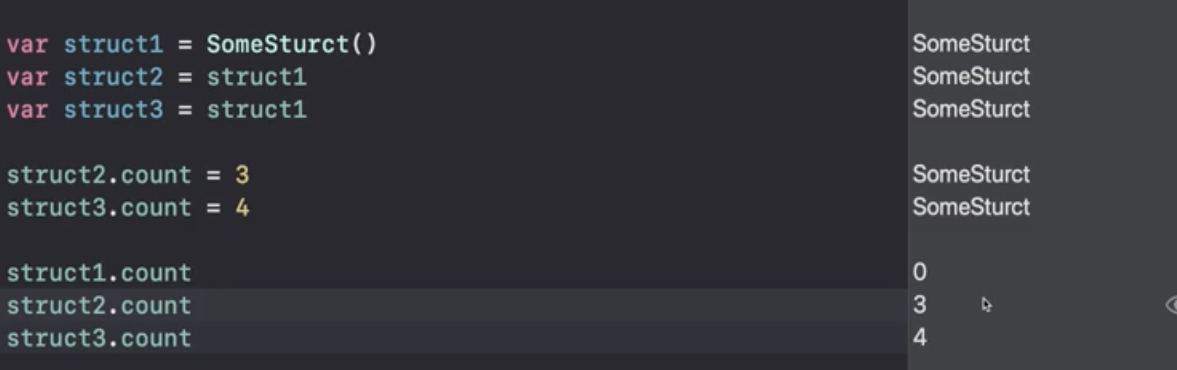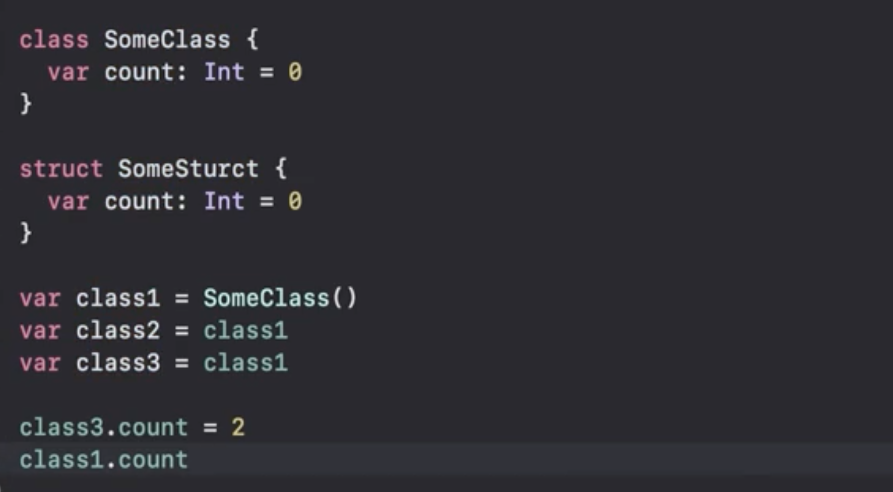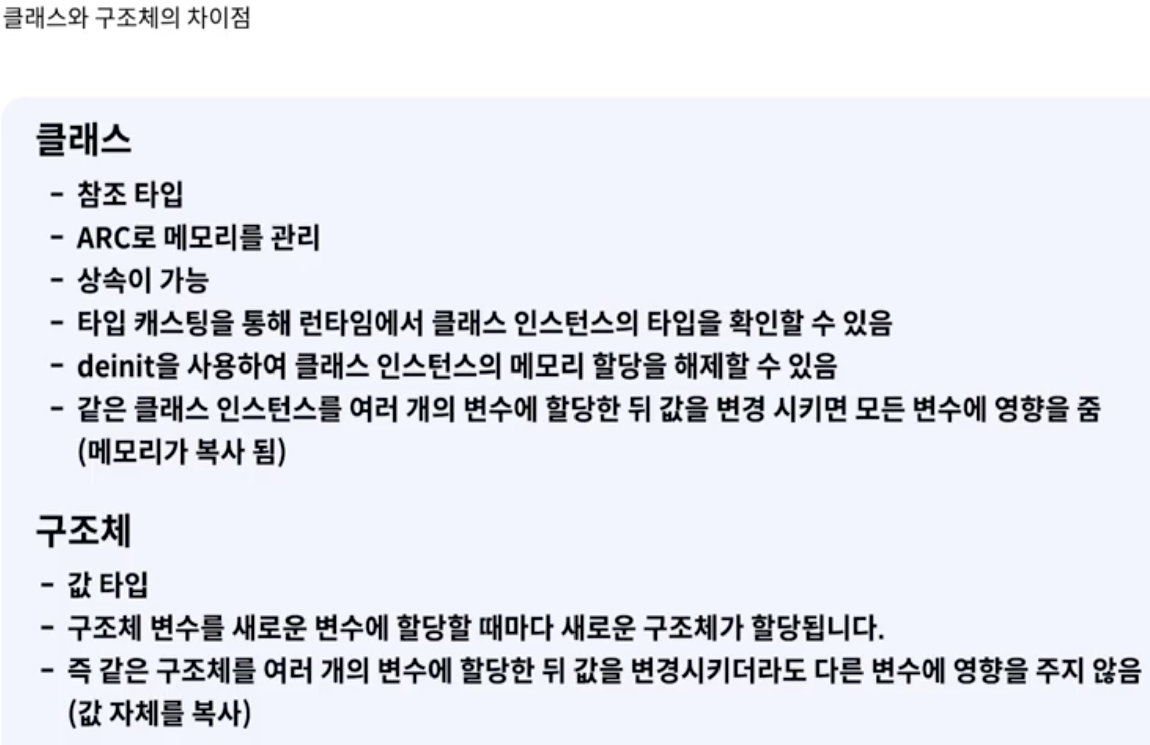 - 구조체를 상수로 선언하면, 내부 프로퍼티들도 상수가 된다 ( 값 타입이기 때문에 )