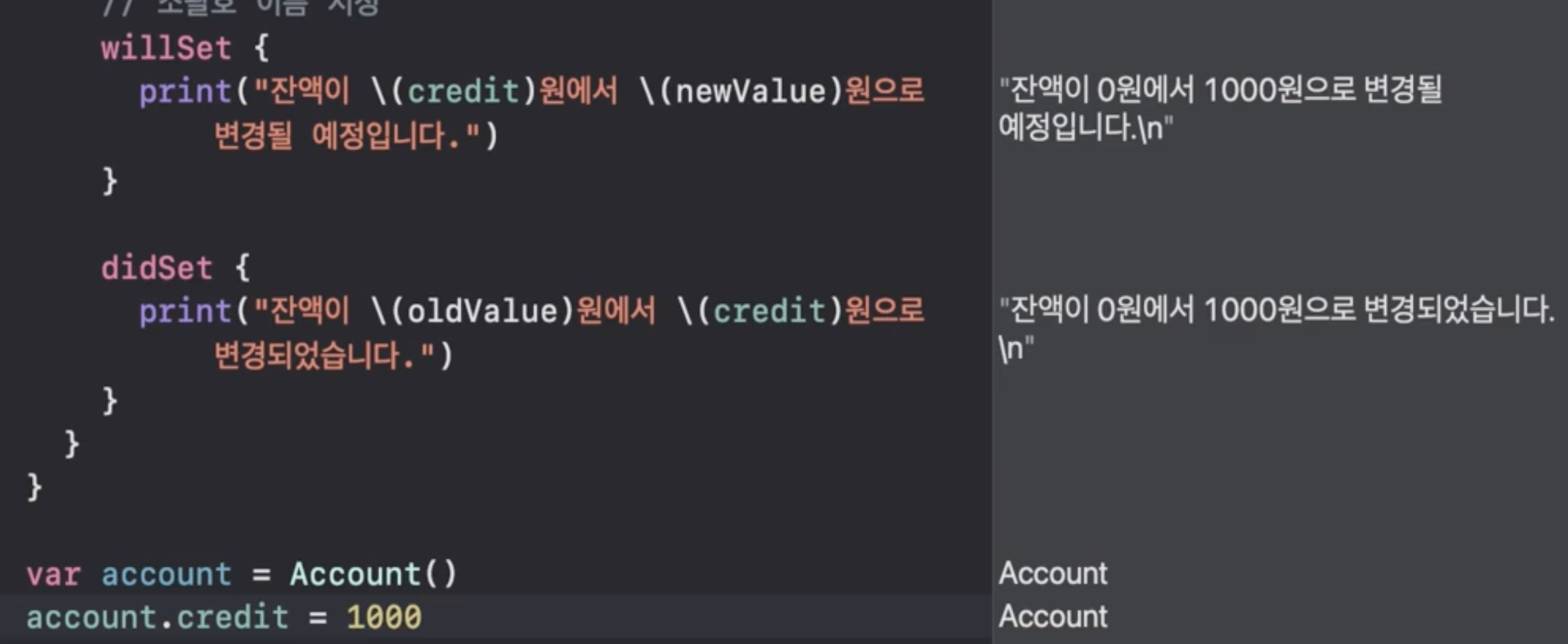 - 저장프로퍼티, 오버라이딩된 저장계산 프로퍼티에서만 사용가능