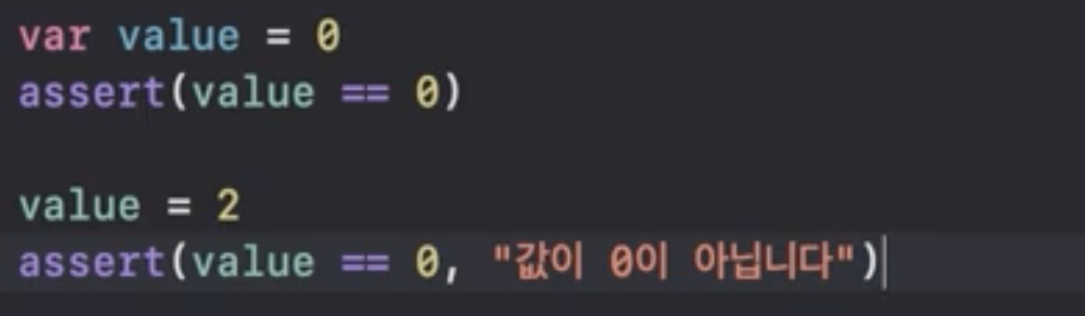 - 조건이 만족하지 않으면 런타임 에러와 함께 메세지를 출력 한다.