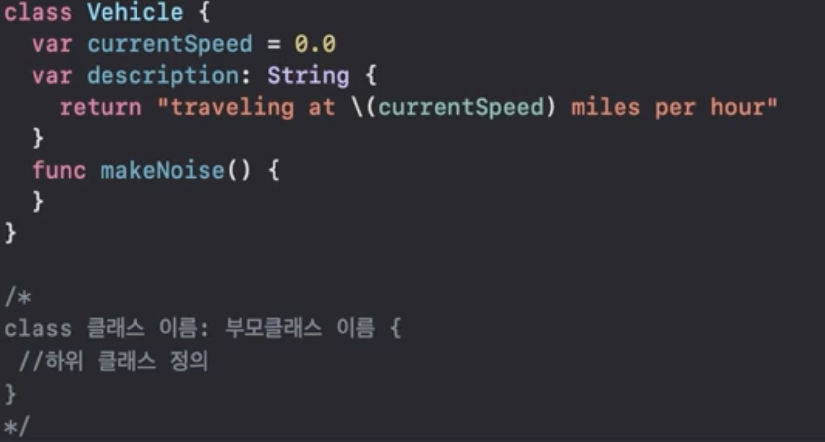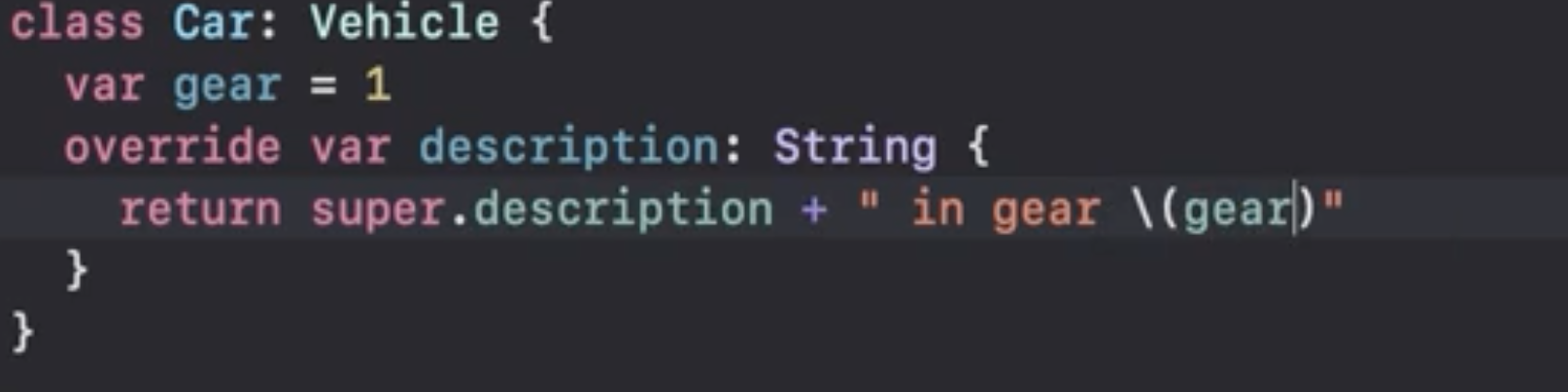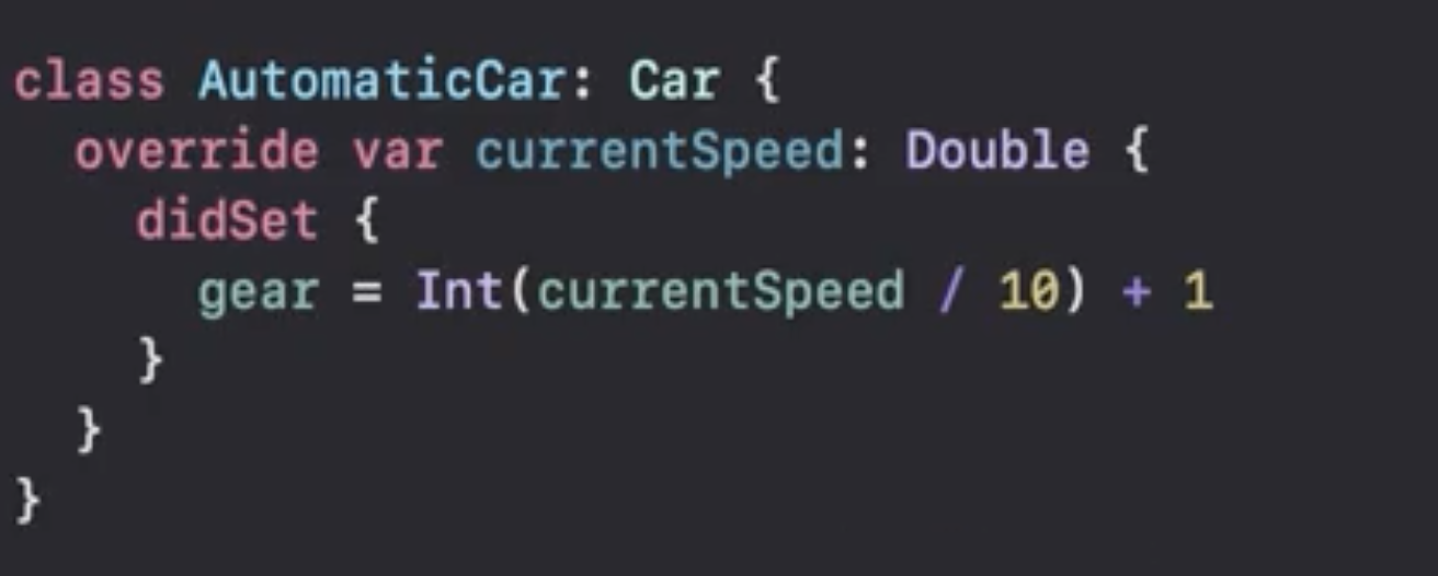 부모의 프로퍼티 오버라이드 ( setter , gettet , observer 를 재정의 하는것을 의미 )