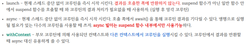 - 할 수 있다면 다른 코루틴 코드를 같이 수행 시키는 코루틴 빌더.