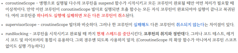 코틀린 코루틴을 쓰는 모든 곳에는 코루틴 스코프(CoroutineScope)가 있다고 생각하면 됩니다.