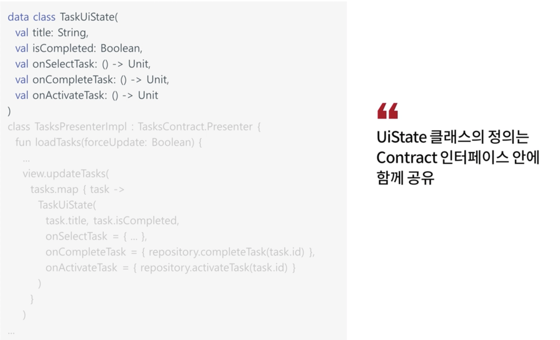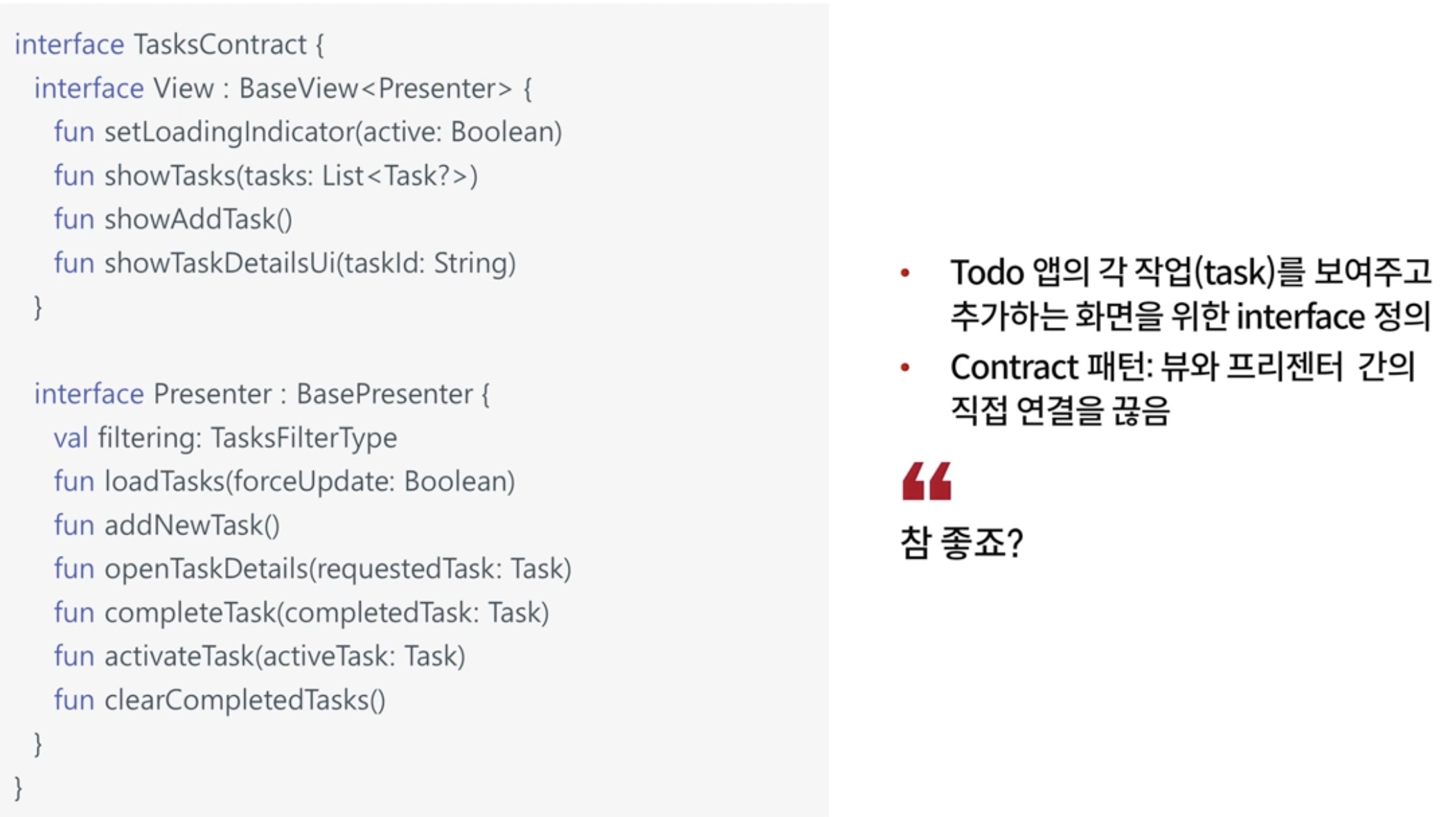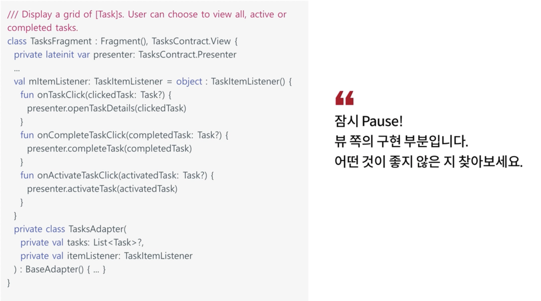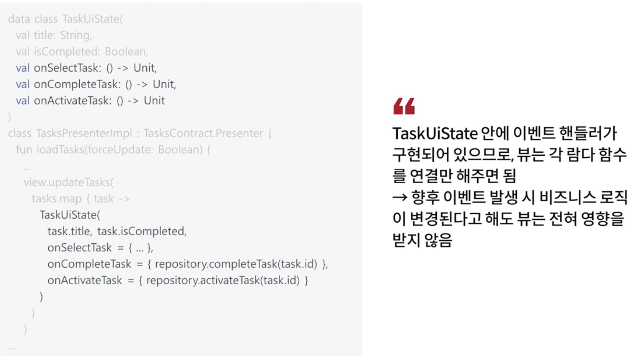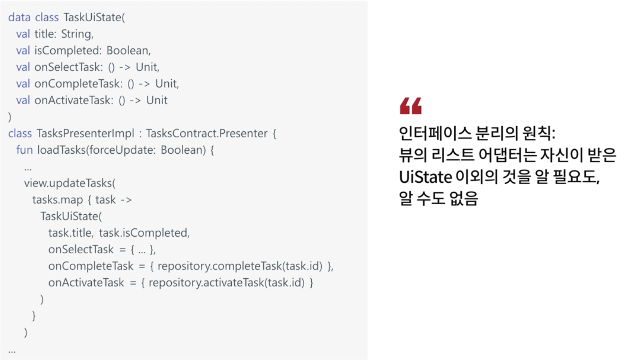 => 제일 나쁜케이스는 TasksAdapter가 직접적으로 프레젠터를 가지고 있는 경우다.