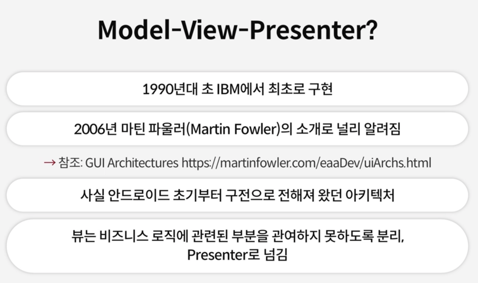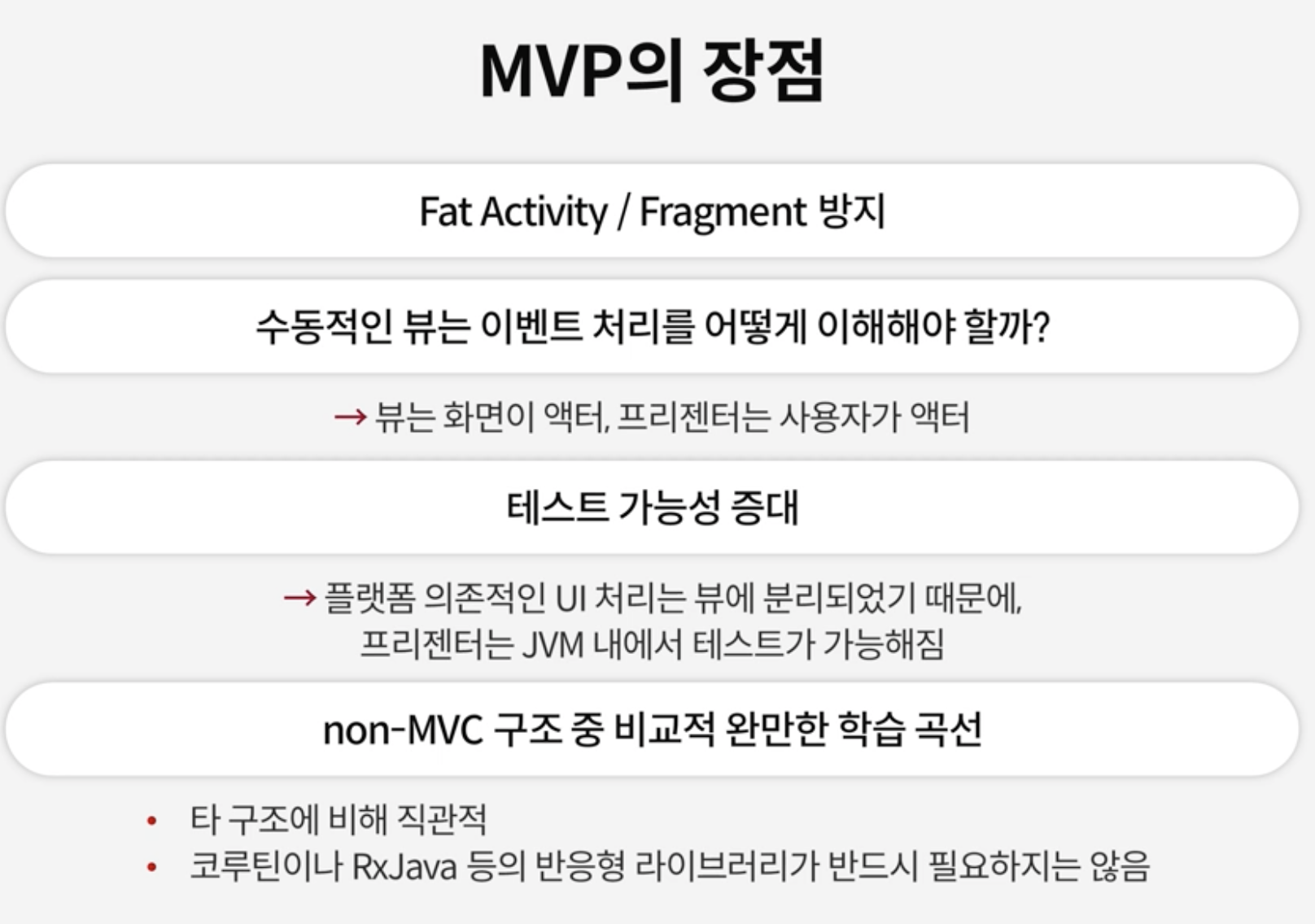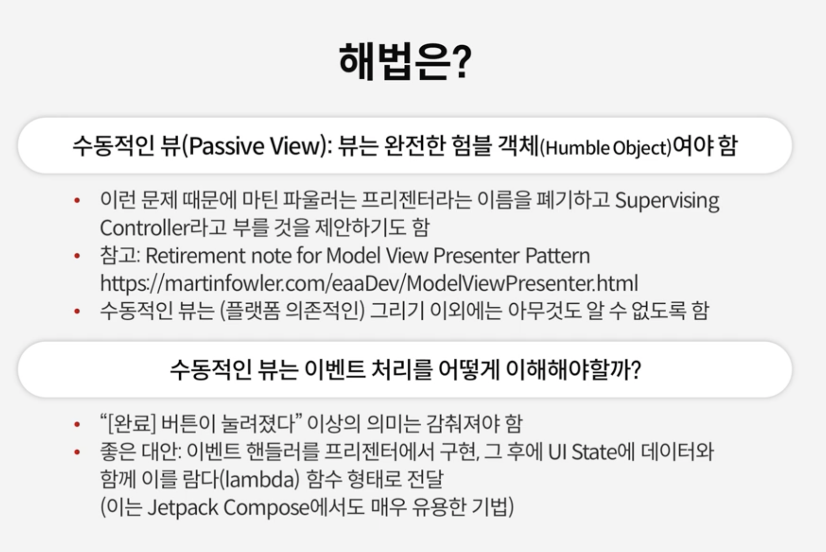 - 이렇게 되면 각각의 리스트 아이템들이 프레젠터를 전부다 알고 있게 된다. ( 인터페이스를 필요이상으로 많이 노출 )