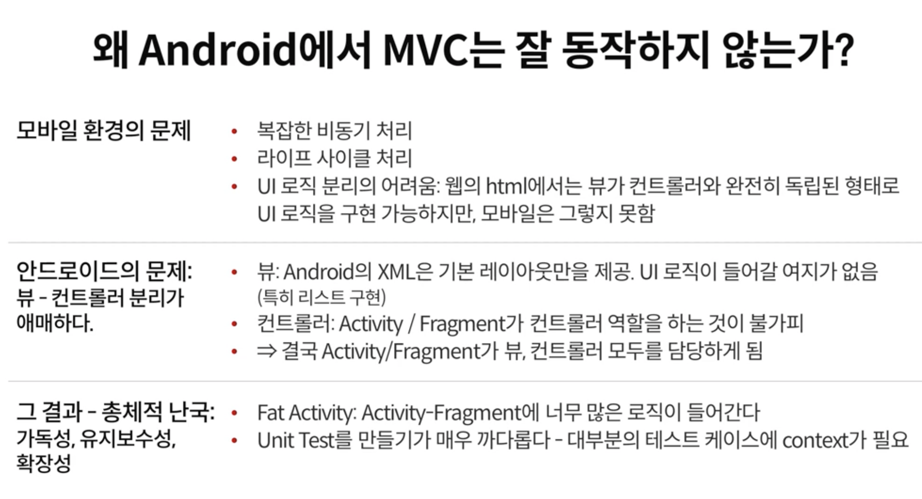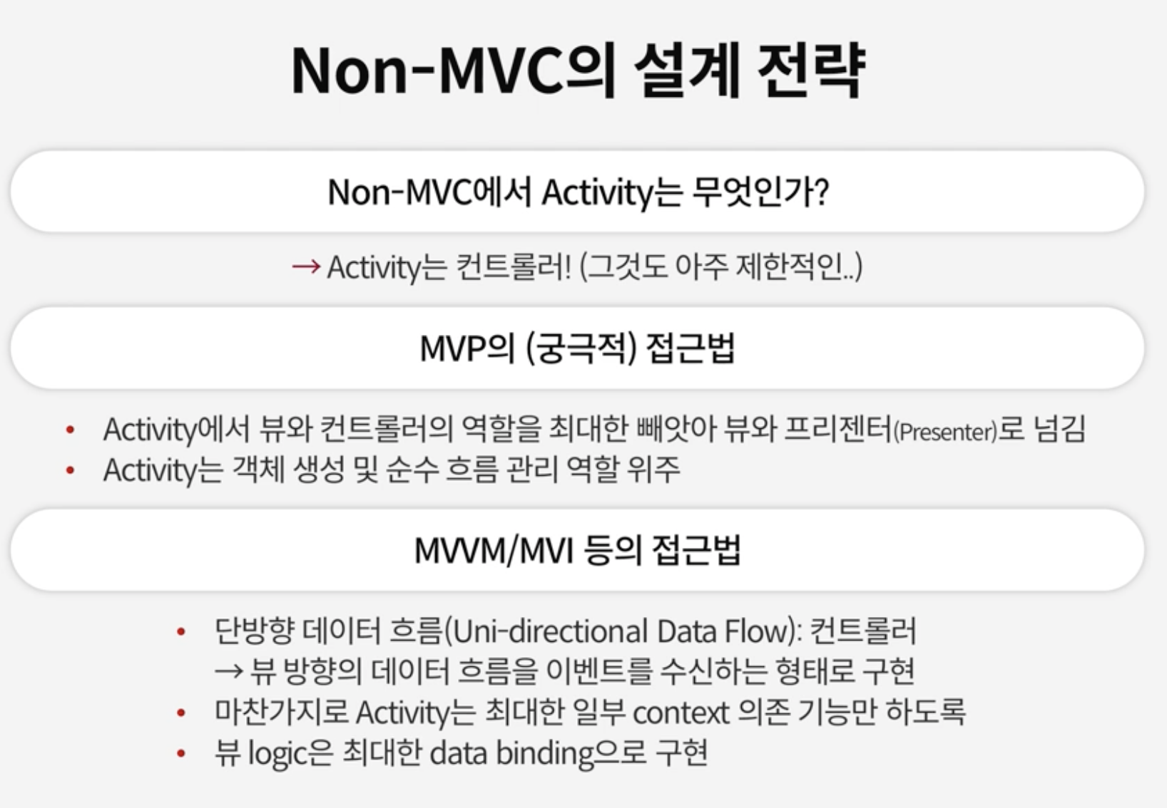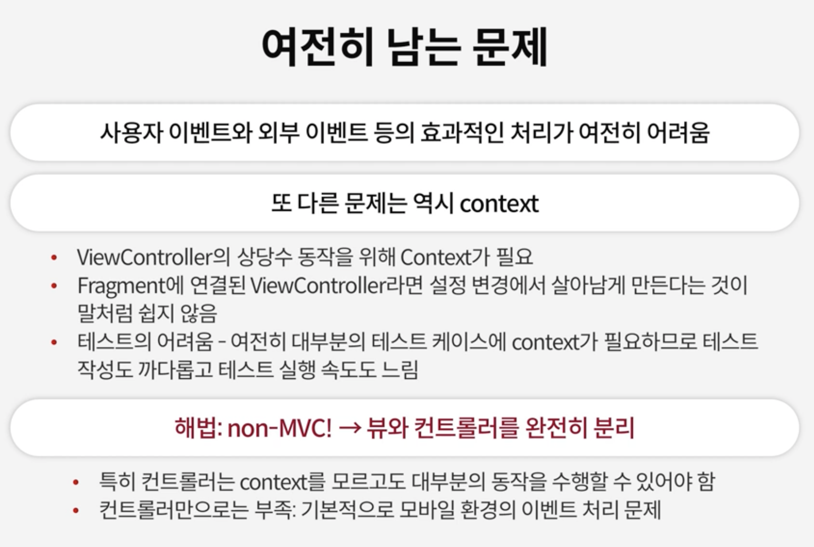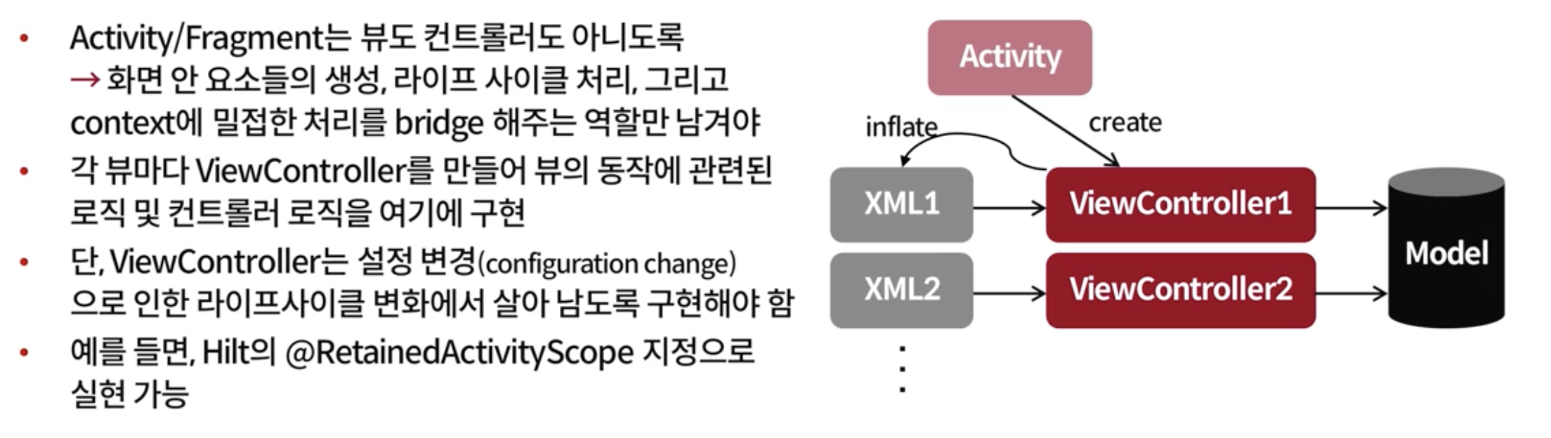 => 엑티비티는 컨트롤러로 아주 제한적인 일만 해야한다. ( 예를 들면 앤트리 포인트 정도 ? )