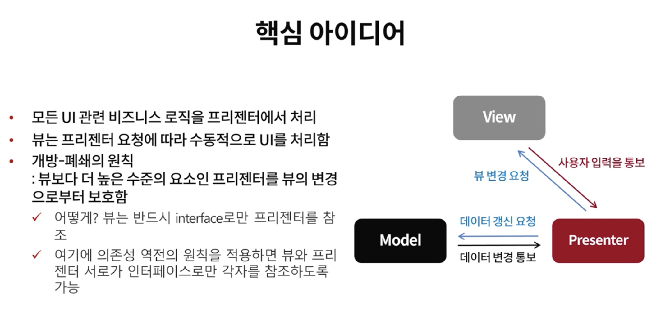 => 사용자의 입력을 받고 비동기적으로 처리하는 것 ( 프레젠터가 view의 메소드를 호출하게 됨 )