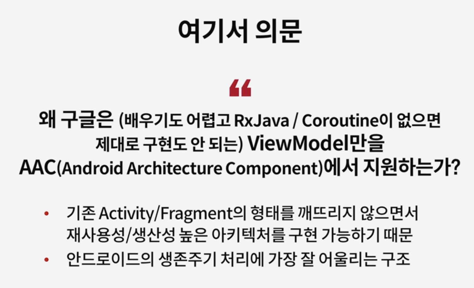 => 뷰들을 그룹화 하여 분리하여 만들고, 그 분리된것마다 뷰모델을 따로 만든다.