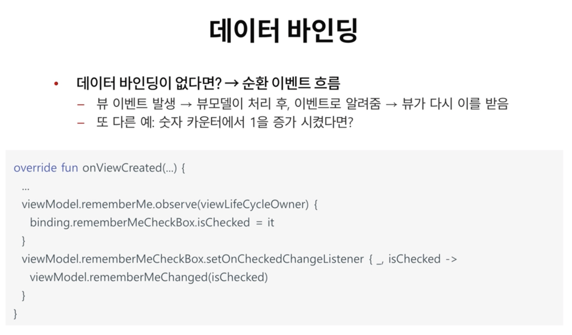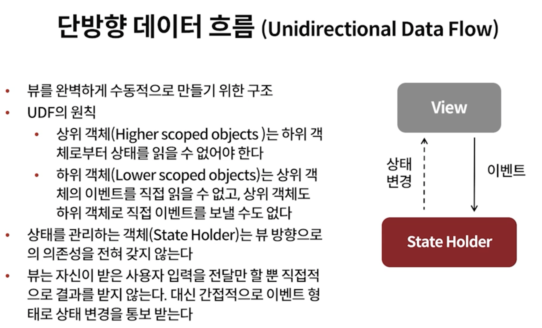 =>state holder를 하나 더둬서 순환 적인 흐름을 처리 한다. ( 뷰와, 뷰모델이 깔끔해짐 )