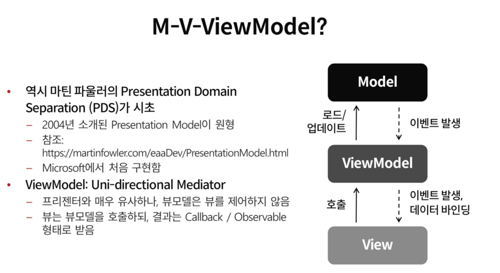 * view는 구독을 해서 이벤트를 통보받는 형태 ( 콜백, Observable 같은거.. )