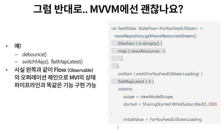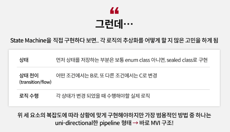 => 오히려 MVVM 에서 MVI 에서 복잡하게 처리해야 할 것들을 간단하게 처리할수 있다.