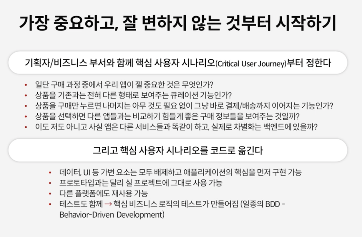 => UI와 DB 연결을 제외하고도 핵심시나리오를 구현 할 수 있기 때문에 나중에 재활용이 가능하다.