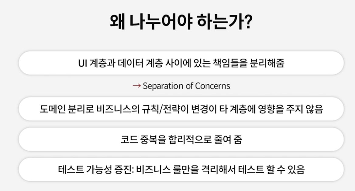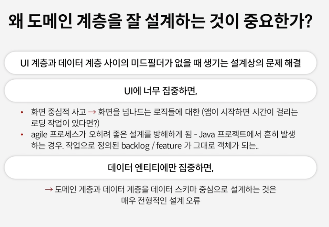 강의를 통틀어서 도메인/데이터 계층 부분이 제일 중요하다고 할 수 있다.. 집중..