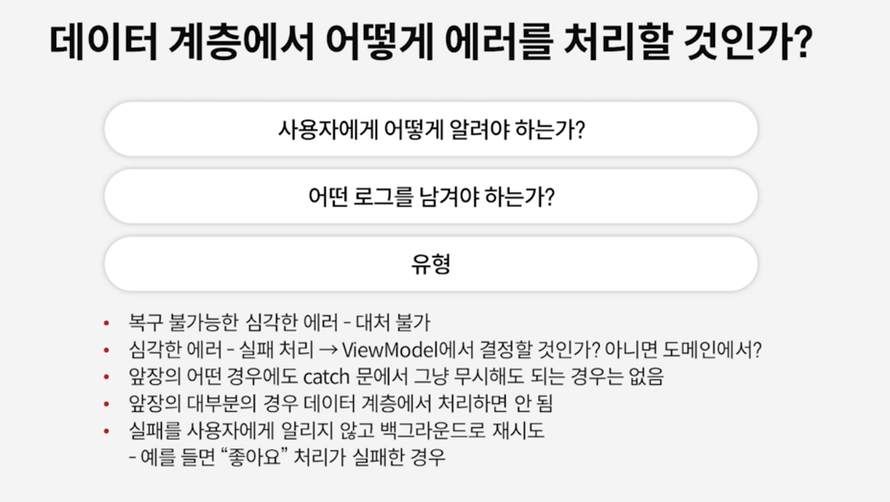 => try catch 를 사용하면서 예외처리를 하고 다시 안보는 경우는 절대로 없어야 한다.