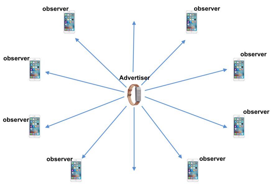 - Advertiser 장치가 목적지 없이 주변에 advertising packet을 송출하면, Scanner 장치는 이걸 수신해서 주변에 있는 advertiser 장치들을 인지합니다.
