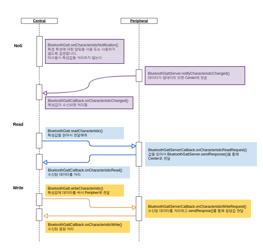 안드로이드 BLE 프로젝트를 진행하면서 데이타 통신 관련 흐름이 이해가 안되서 ... 그림으로 작성해 보았다.