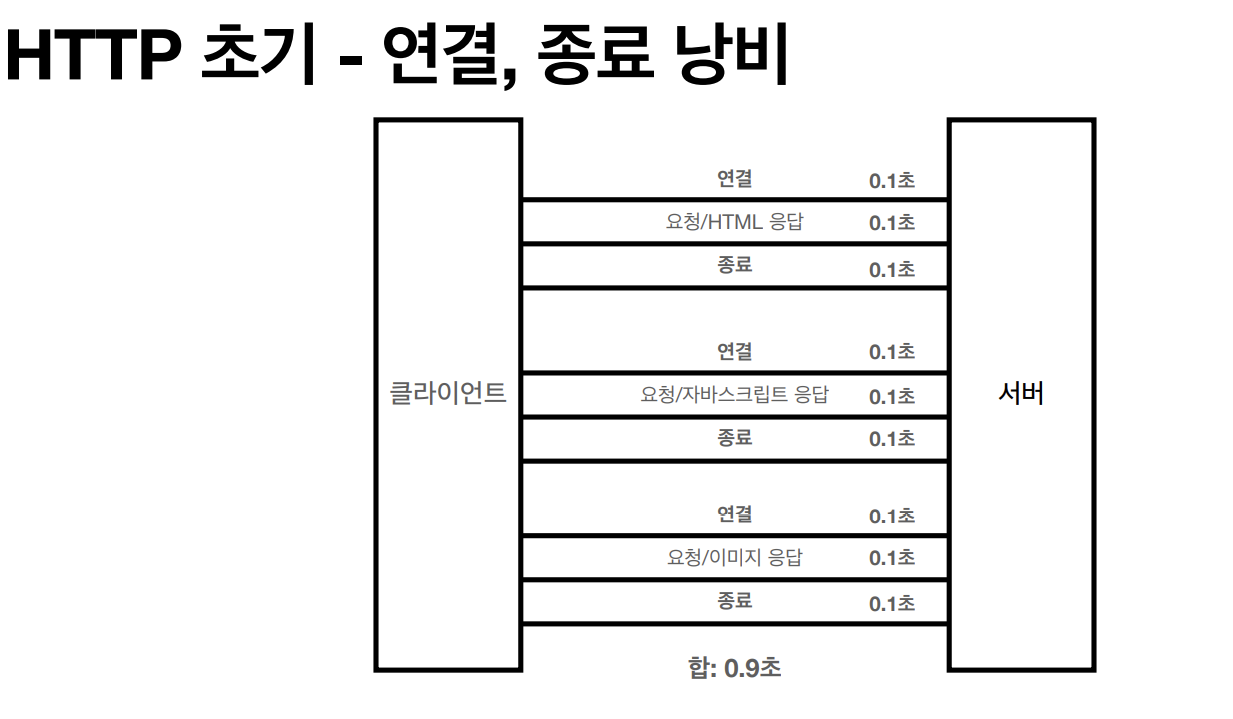 한계: 새로 연결될 때마다 TCP/IP 연결을 새로 맺어야 하므로 3-way handshake에 따른 시간이 추가된다.