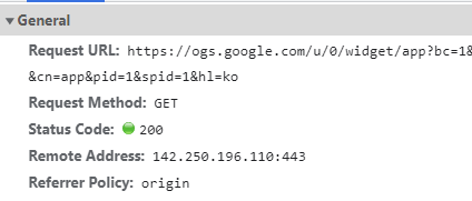구글에서 헤더를 확인해보면, 아래처럼 General로 요청 Method와 상태코드를 함께 나타내기도 한다.
