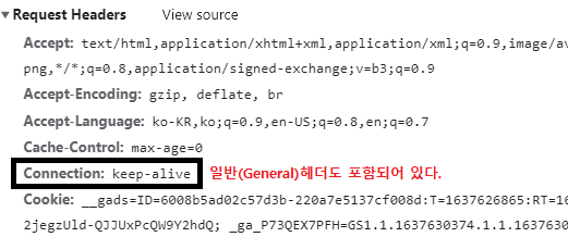 요청 및 응답 메세지 모두에서 공통적으로 사용 가능한 일반 목적의 헤더 항목이다.