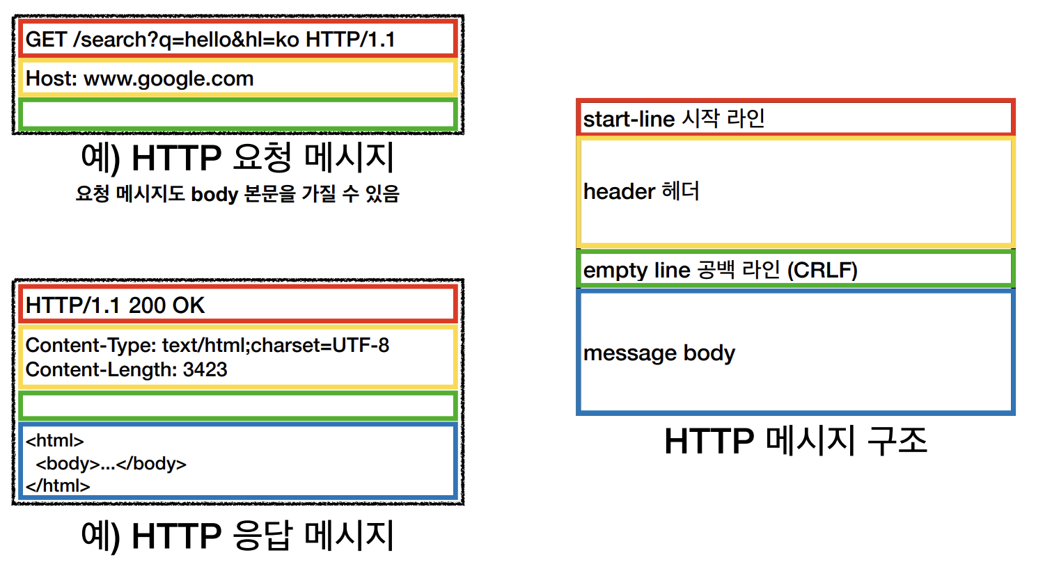 HTTP메세지는 HTTP 요청메세지와 HTTP 응답메세지로 구분된다.