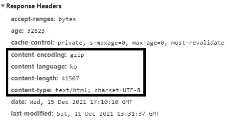 ex. 내용 길이, 컨텐츠 언어, 인코딩, 만료 날짜 및 기타 중요한 정보와 같은 정보.