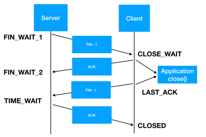 3) 그와 동시에 클라이언트에서 해당 포트에 연결되어있는 어플리케이션에게 close()를 요청.