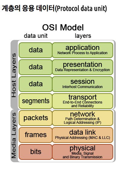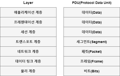 - 즉, PDU = PCI(프로토콜 통신 유닛의 줄인말로 쉽게 말하면 헤더 정보) + SDU 라고 생각하자.