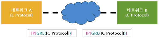 - 네트워크 A, B가 C Protocol을 이용해 통신하기위해 아래와 같이 Tunneling을 구성한다.