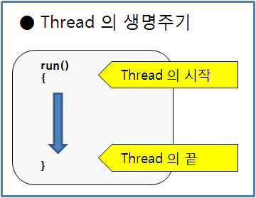 위 처럼 run() 진입이 Thread의 생성이며, run()함수의 끝이 Thread 종료이다.