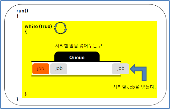 Queue에는 처리해야할 일 즉 job들을 어떤 누군가가 넣게 된다.