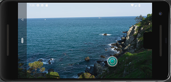 - LAYOUT_IN_DISPLAY_CUTOUT_MODE_DEFAULT : Cutout 영역을 Android Default로 처리한 상태이며, 가로로 누었을 때 아래와 같다. default인 경우 화면 방향에 따라서 Cutout 영역의 사용이 조금씩 다르게 보인다.