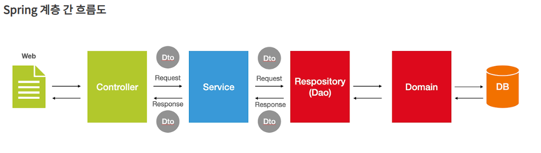 먼저 만들어둔 코드를 설명하기에 앞서 spring에서는 웹 애플리케이션 계층 구조가 어떻게 되는지 알아볼 필요가 있어보였다.아래는 코드짠 구조인데...아무리 봐도 왜 controller, domain, repository, ser