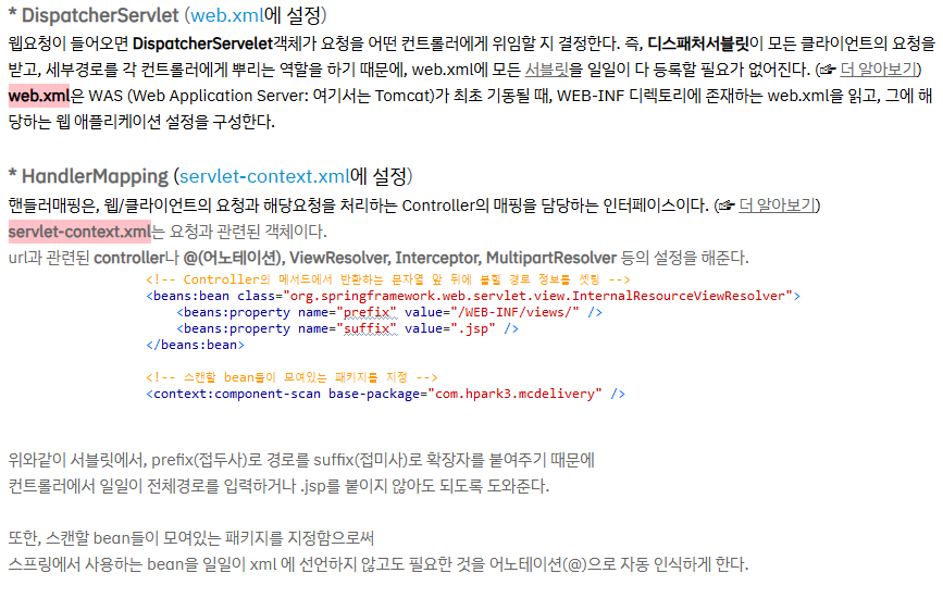 | Dispatcher Servlet 은 HTTP 프로토콜로 들어오는 모든 요청을 가장 먼저 받아 적합한 컨트롤러에 위임해주는 프론트 컨트롤러(Front Controller)라고 정의할 수 있습니다. dispatcher-servlet이 해당 어플리케이션으로 들어오는 모든 요청을 핸들링해주고 공통 작업을 처리 ( * Dispatcher Servlet 이 무었인지는 추후에 다시 자세히 포스팅 예정... ) |