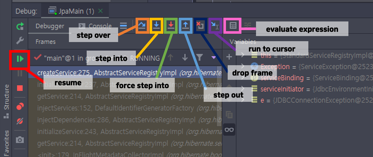 (step into๋ ์คํตํ๋ค) - Windows: alt + shift + F7