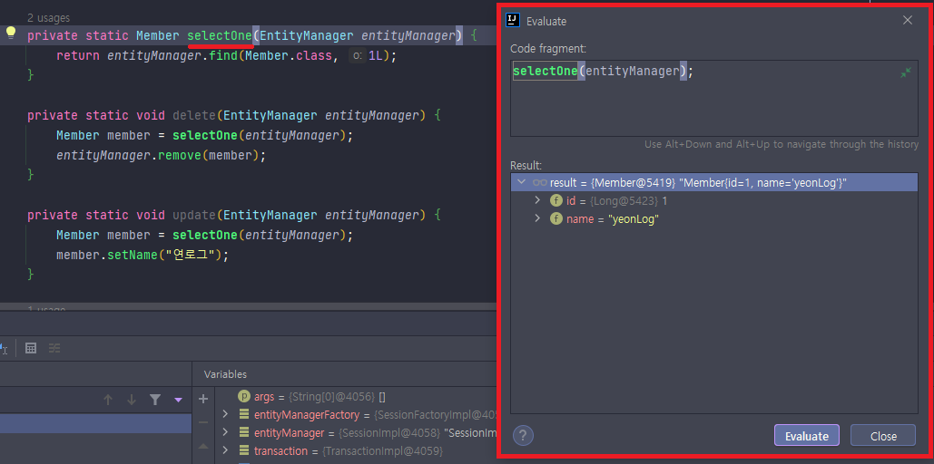 - ํ์ฌ ์์น์์ ์ฝ๋ ์คํ (ํ๋จ์ ์ด๋ฏธ์ง ์ฐธ๊ณ )