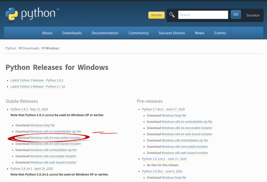 Stable Releases가 안전하다는 뜻이고 64 bit로 설치해 주기 위해 WIndows x86-64 executable installer를 다운 받아 설치한다.