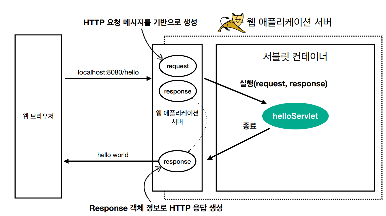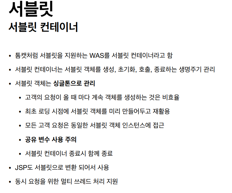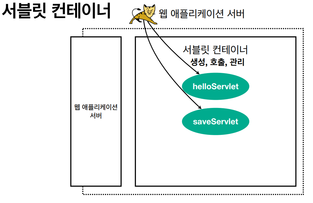 이를 관리해주는 부분이 필요한데 이 관리를 서블릿 컨테이너가 해준다.