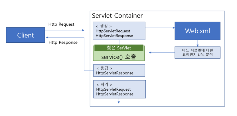 서블릿이 호출되고 객체를 생성해서 응답 값을 보내면 이를 파기하고