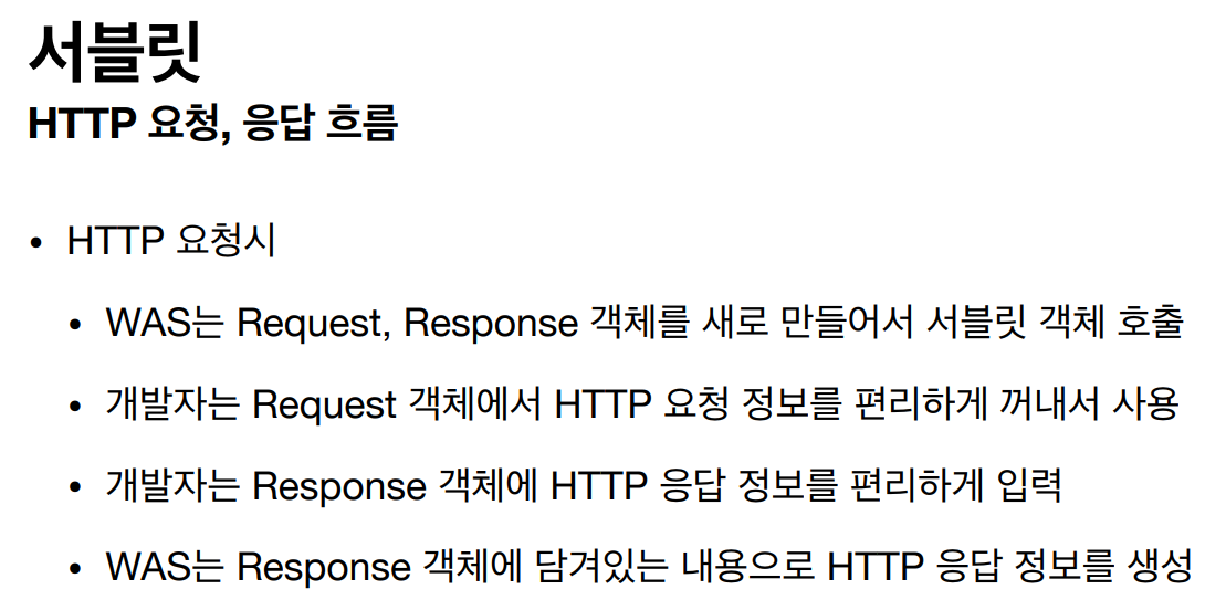 결과적으로 개발자는 서블릿에 구현해야 할 비지니스 로직에 대해서만 초점을 두게끔 도와줍니다.