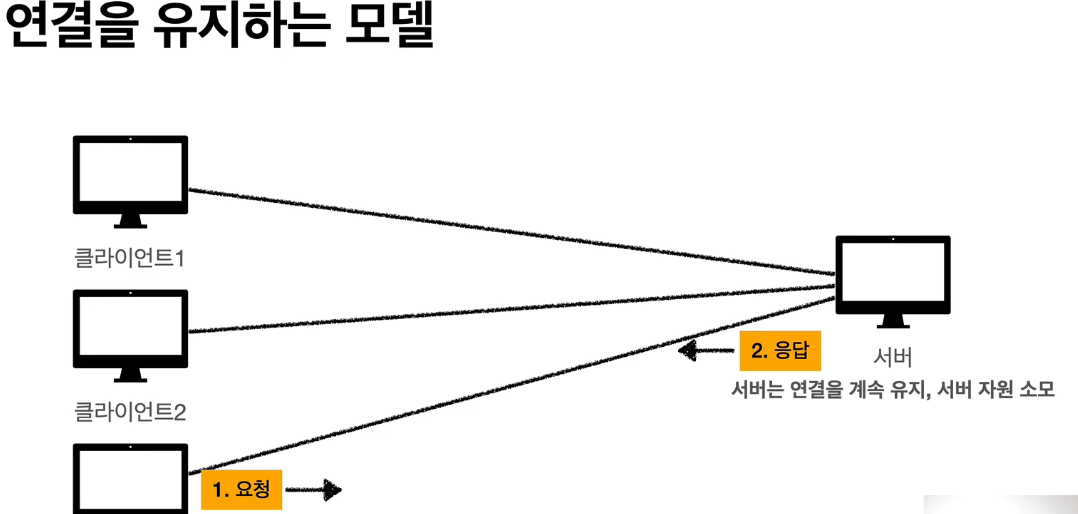 쭉 한번에 다받고 연결을 종료 ( 지속연결 )