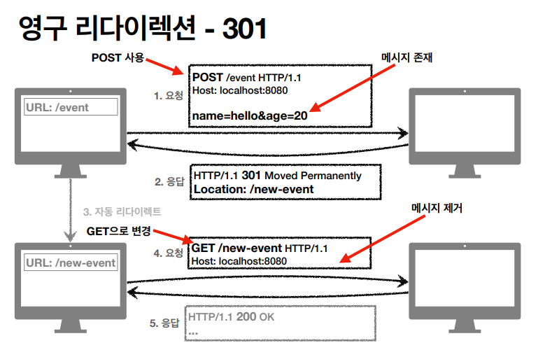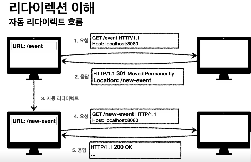 웹 브라우저는 3xx응답의 결과에 Location 헤더가 있으면, Location 위치로 자동이동 (리다이렉트)