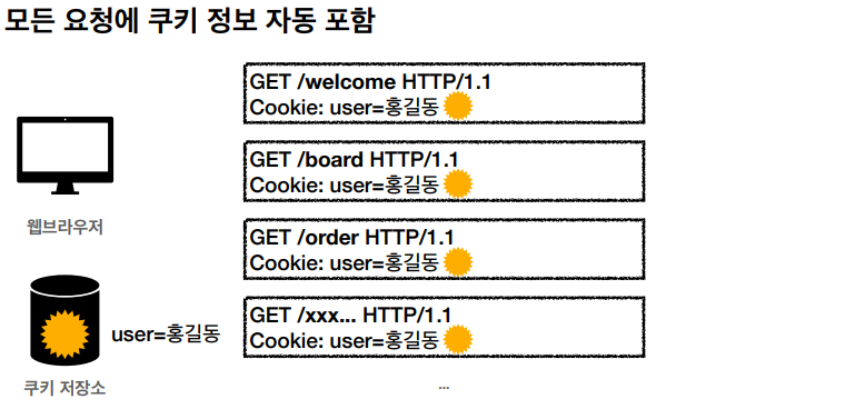 • Cookie: 클라이언트가 서버에서 받은 쿠키를 저장하고, HTTP 요청시 서버로 전달